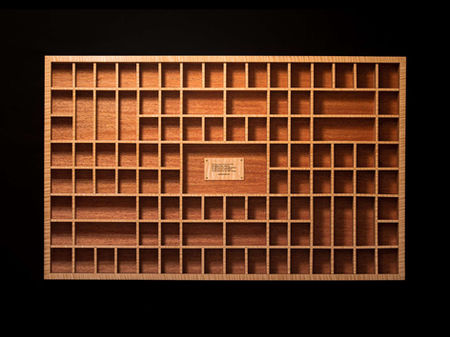 Sapele & Maple Wall Display Inspired by Letterpress Tray with Engraved Plaque, and Striking Contrast